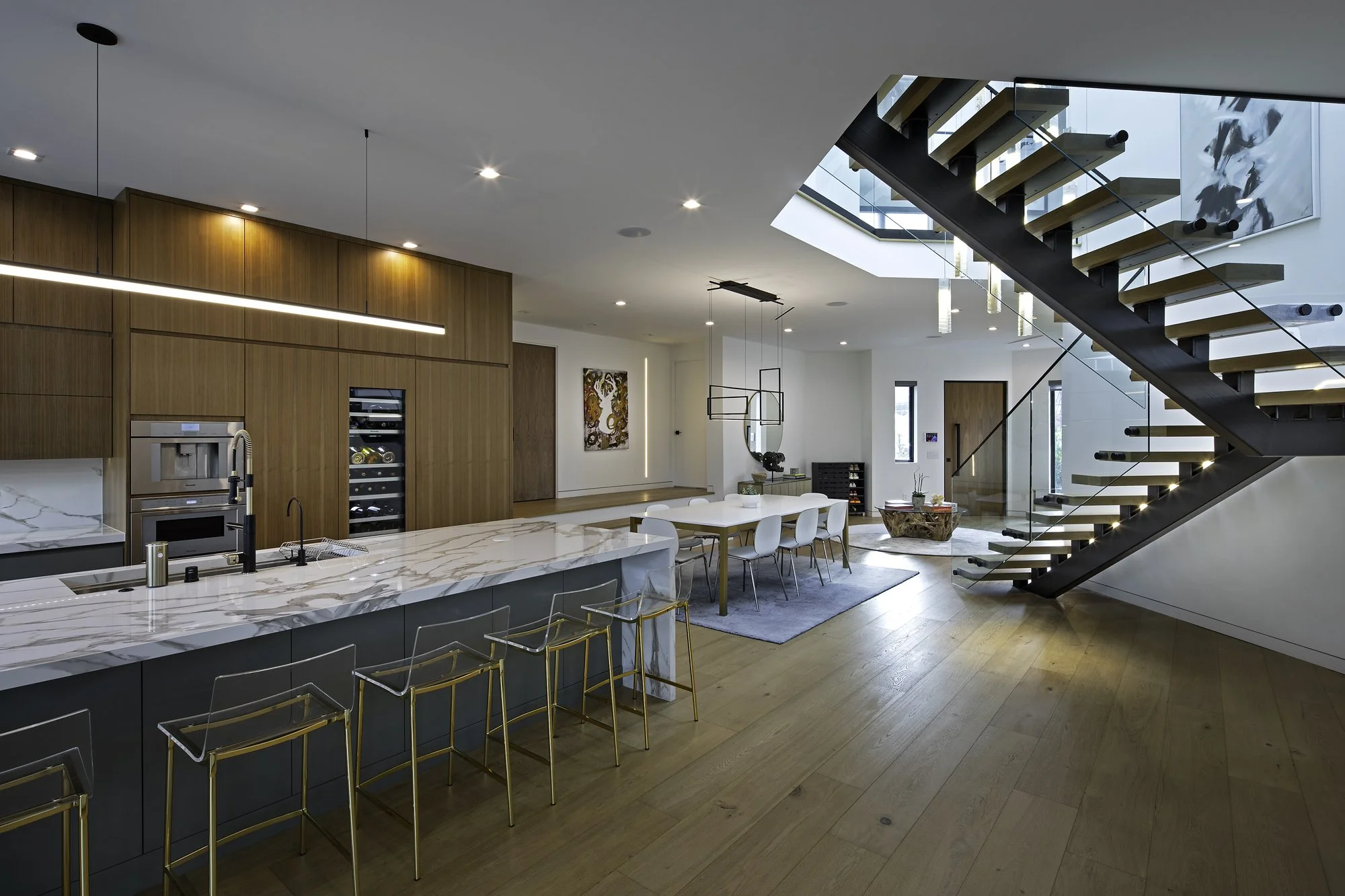 Major renovation of an existing residential footprint on a ~7,200 sq.ft lot. The approximately 3,600 sq.ft home includes five bedrooms and four and a half bathrooms. The project involved a full interior and exterior reconfiguration, resulting in a modern residential layout and architectural expression.