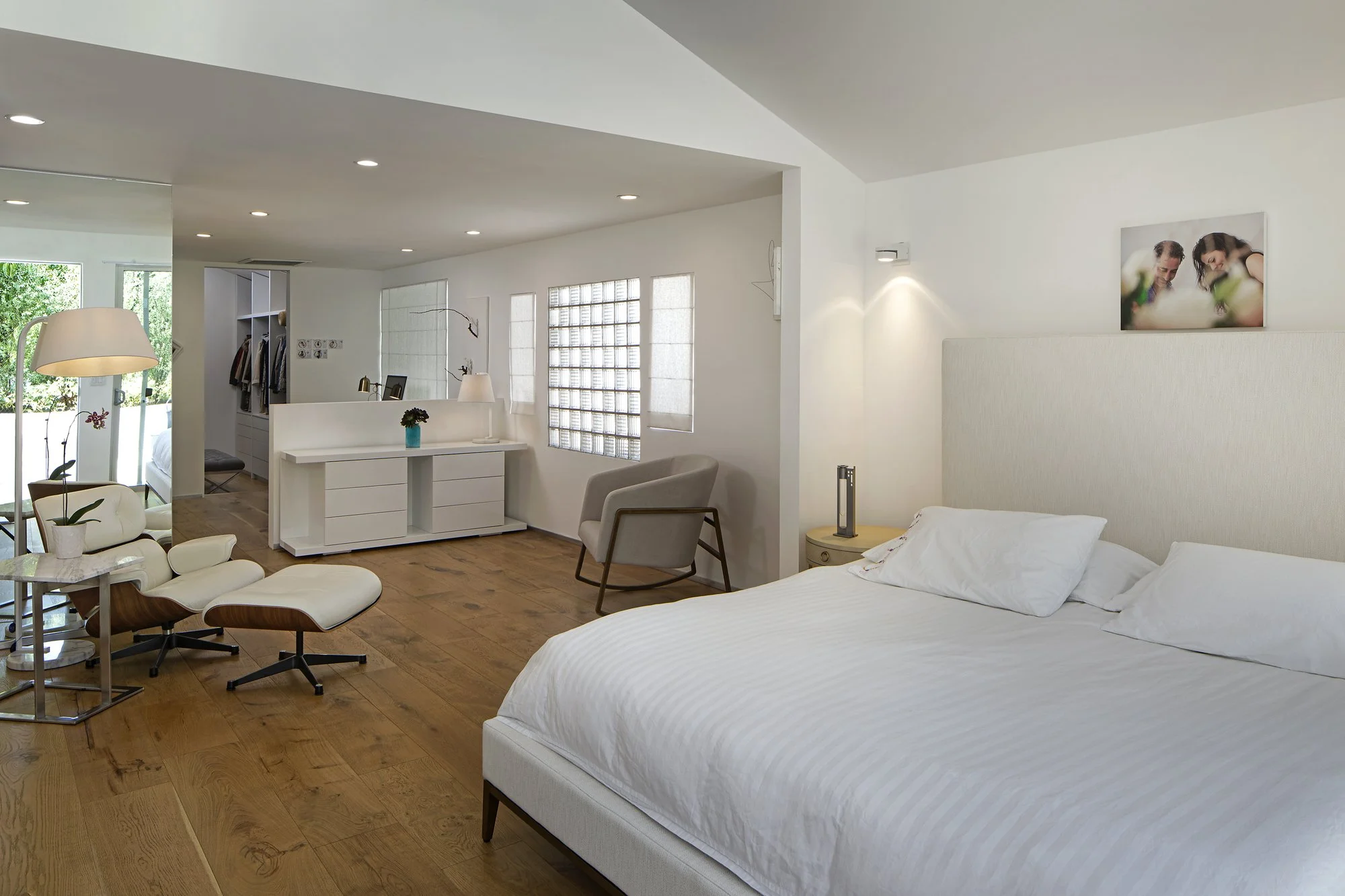 Modern residential addition and renovation to an existing footprint on a ~6,700 sq.ft lot. The approximately 2,700 sq.ft home includes three bedrooms and three and a half bathrooms. The project integrates sustainable design strategies within a contemporary architectural framework.